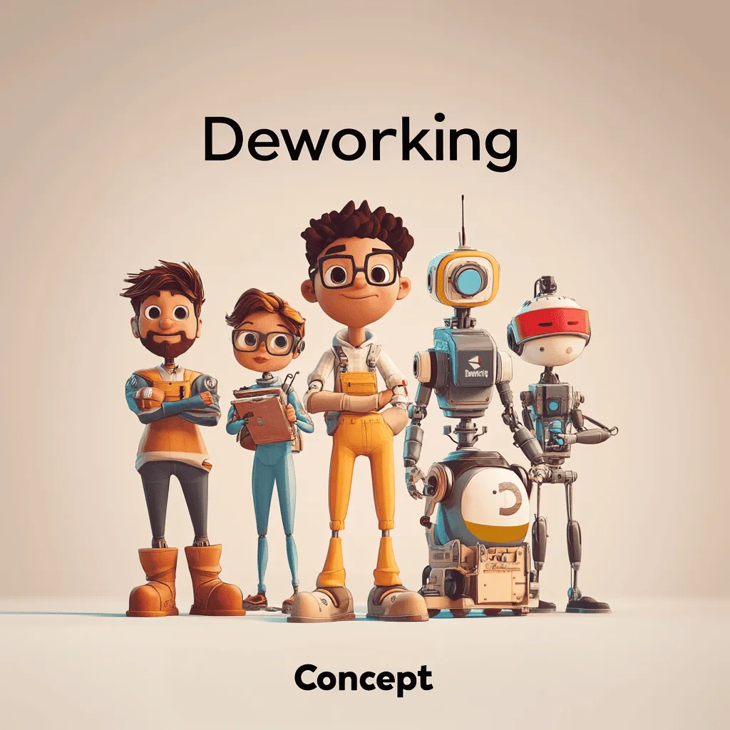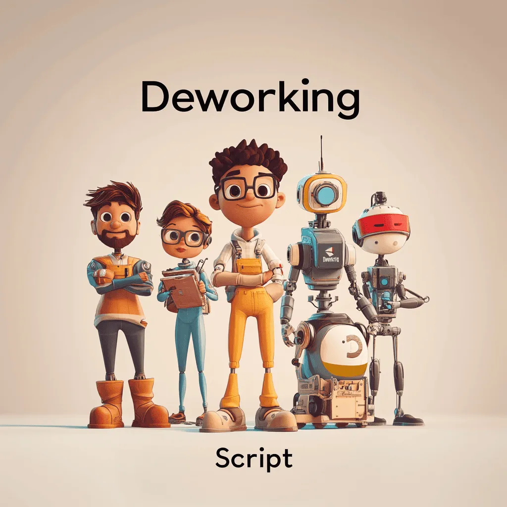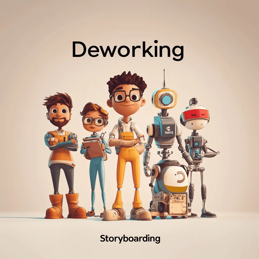 An example of how the process of creating a promotional video for the brand "Deworking" can be broken down into individual tasks, with brief descriptions of each of them reflecting the essence of each task: concept, script, visual, animation, storyboard, editing, post-production, promo.